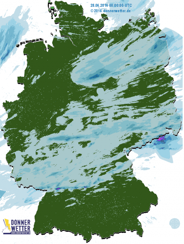 Vom Rheinland bis nach Schleswig-Holstein blieb es hingegen ebenso trocken wie südlich einer Linie von Karlsruhe nach Regensburg.
