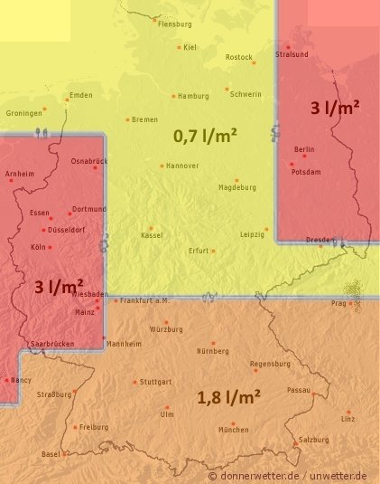Besonders im Südwesten war es gestern nass. In Baden-WÜrttemberg konnten 20-30 l/m2 lokal gemessen werden. Auch in einer Linie von Hamburg über Niedersachsen bis NRW gab es mehr Regen. Trocken blieb es in den östlichen Bundesländern und in Bayern.