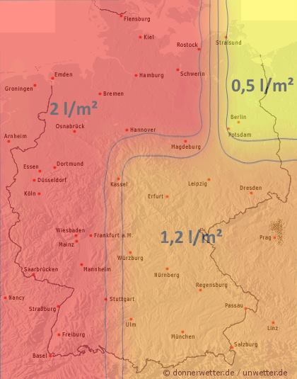 Heute gibt es im Norden und an den Alpen örtlich noch etwas Regen oder einzelne Schauer. Die Niederschlagsmengen sind jedoch eher gering. Am Abend zieht in Schleswig-Holstein leichter Warmfrontregen auf, der sich im weiteren Verlauf über Norddeutschland ausbreitet.