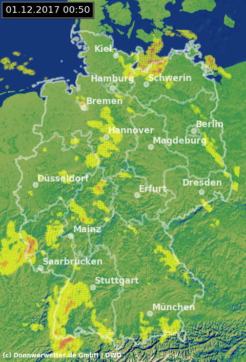 Radarbild von Freitag, 01.12.2017 um 00.50 Uhr