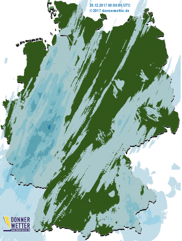 Heute zieht eine Niederschlagszone über die Mitte und den Süden. Bei leichter Milderung steigt die Schneefallgrenze auch in Bayern auf über 800 m. Die Niederschlagsmengen liegen dabei zwischen 5 und 15 Liter pro Quadratmeter. Ganz im Norden bleibt es eher trocken.