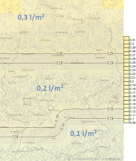 Heute und in den nächsten Tagen treten Niederschläge im Großteil unseres Landes nur selten auf. Lediglich im Südosten, sowie im Ostseeumfeld kann es gelegentlich etwas schneien. Die Mengen liegen jedoch meist unter 5 Liter pro Quadratmeter. Mit auffrischendem Nordostwind wird es von Tag zu Tag kälter.