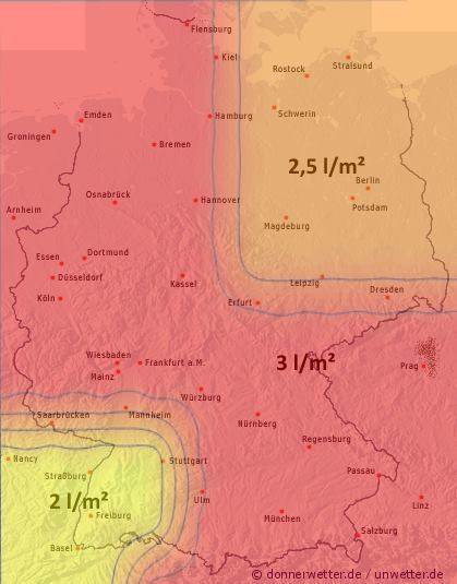 Der Samstag war durch eine Zweiteilung geprägt. Der Norden und Osten blieben trocken, während im Süden und Westen Schauer und Gewitter für Unruhe sorgten. Es gab lokal bis zu 70 l/m2 an Regen durch Gewitter und entsprechend Überschwemmungen, wie an der Mosel in RP, oder auch in NRW und in Hessen.