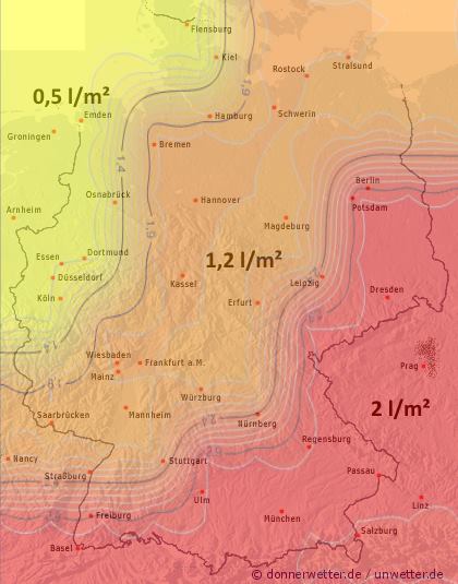 Nur im Norden Detuschlands kam es zu wenig Regen. Im Westen und Süden waren vereinzelte Schauer am Himmel, die leichte Nässe hinterlassen haben.