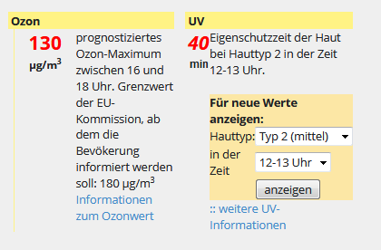 In den schriftlichen Berichten erwähnen wir die UV-Gefahr von Zeit zu Zeit; ein dauerhaftes Erwähnen von UV-Werten  finden wir allerdings nicht sinnvoll.