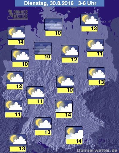 Zum ausgiebigen Durchlüften laden endlich auch wieder die Nächte ein, so sinken die Temperaturen in der Nacht auf Dienstag regional auf Tiefstwerte um 10 Grad C (s. Karte links). Erschien Sie in den letzten Tagen wie ein Relikt aus einer anderen Zeit, könnte bei solchen Werte fast wieder ein dünnes Jäckchen zu Einsatz kommen.