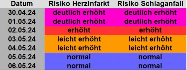 Die Schlaganfall- und Herzinfarktrisiken bis zum 06.05.2024