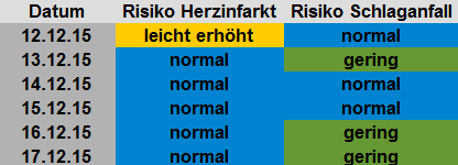 Die europaweiten Herz-Kreislauf-Risiken am Wochenende (bis 14.12.2015):