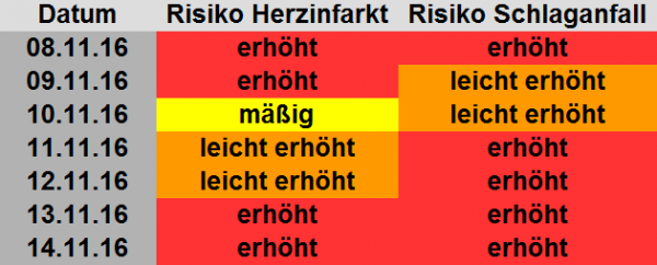 Auf diese Risiken müssen sich Herz- / Kreislauf- und Schlaganfallpatienten in dieser Woche einstellen.