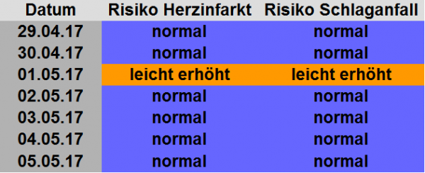 Die Schlaganfall- und Herzinfarktrisiken bis zum 05.05.2017