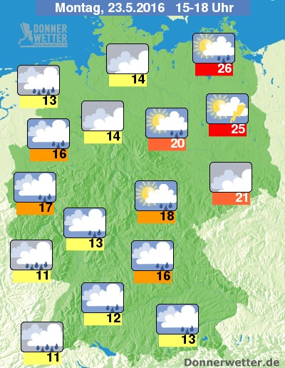 Mit hohen Temperaturgegensätzen startet Deutschland in die neue Woche. Während eine Kaltfront bereits in weiten Teile des Landes die Temperaturen nur noch auf Werte um 11 bis 18 Grad C ansteigen lässt, wird es im äußersten Nordosten nochmals sommerlich warm.