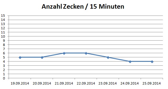 Im Süden und Westen sind nach unseren Beobachtungen wesentlich mehr Zecken zu finden. Bei einer Kontrolluntersuchung am Mittelrhein wurden an feuchten Stellen bis zu 6 Zecken in 15 Minuten im Unterholz aufgespürt. Feuchtes Wetter bis zum Sonntag lässt die Aktivität eher ansteigen: