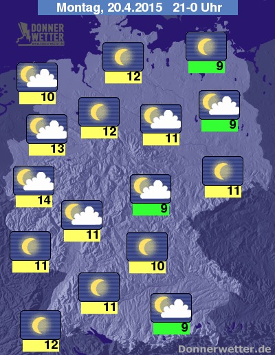 Heute Abend zeigt sich der Himmel oft sternenklar, gebietsweise können aber auch ein paar Wolken durchziehen, dazu bleibt es trocken. Die Abendtemperatur liegt bei 14 Grad in Krefeld und etwa 9 Grad in Neubrandenburg.