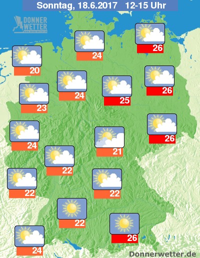 Heute Nachmittag ziehen meist nur lockere Wolkenfelder übers Land hinweg, hier und da, besonders im Süden ist es sogar wolkenlos. Gebietsweise können auch mal mehr Wolken durchziehen, diese bringen jedoch keinen Regen. Die Temperatur liegt bei 20 bis 26 Grad.