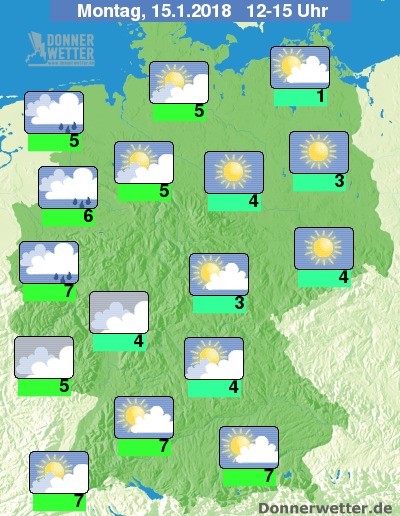 Heute Nachmittag ziehen im Nordwesten und Westen des Landes dichte Wolken mit Regen auf. Über der Osthälfte und auch im Südwesten Deutschlands scheint dagegen noch häufig die Sonne und es bleibt noch trocken. Die Temperatur liegt bei 1 Grad an der Müritz und 7 Grad im Oberrheingraben. An Nord- und Ostsee weht ein oft stürmischer Wind. Vor allem an der Nordsee herrscht auch teils Sturm.