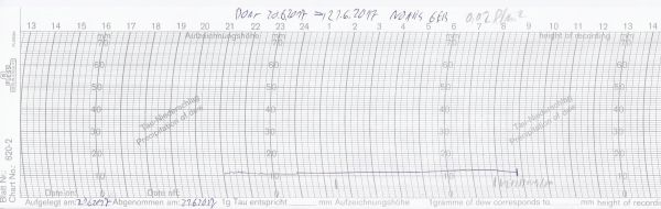 Die geringe Benetzung (0,02 l/m²), die in den Nacht- und frühen Morgenstunden zu beobachten war, verdunstete bereits mit den ersten Sonnenstrahlen wieder.