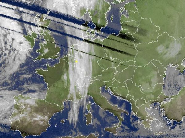 Auf dem Satellitenbild von heute Morgen erstreckt sich ein Tiefausläufer des Tiefs "Friedbert" mit Kern bei Schottland von Norwegen, über die Nordsee, Benelux und die Westhälfte Deutschlands bis über die Schweiz und nach Südfrankreich. In diesen Regionen fiel verbreitet, zum Teil langanhaltender Regen.