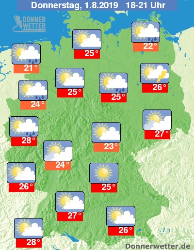 Am frühen Abend bewegen sich die Temperaturen noch zwischen 23 und 28 Grad, etwas kühler bleibt es an den Küsten.