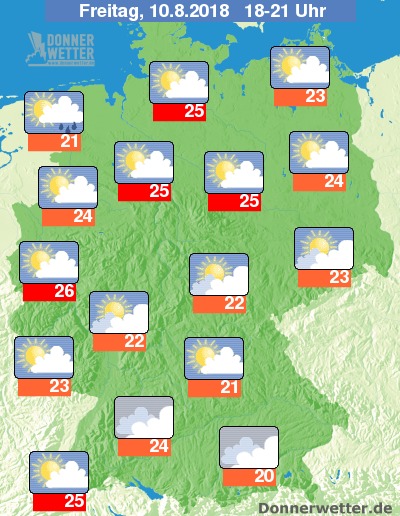 Dabei machen sich die kühleren Luftmassen, die das Tief mit sich gebracht hat, heute landesweit bemerkbar. Die Höchsttemperaturen liegen verbreitet bei Werten um die 25 Grad, an der Nordsee und am Alpenrand werden kaum mehr als 20 Grad erreicht.