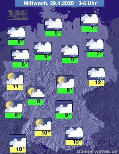 Am frühen Abend dominieren häufig die Wolken und bringen teilweise Regen oder Schauer. Örtlich kann es dabei auch blitzen und donnern. In Teilen von Mecklenburg-Vorpommern, sowie Sachsen bleibt es noch trocken.