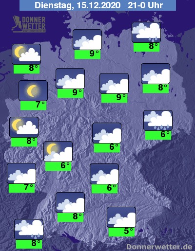 Am Abend dominieren meistens kompakte Schichtwolken und gebietsweise fällt noch etwas Regen oder Sprühregen. Bis Mitternacht trocknet die Luft im Nordwesten ab und der Himmel klart zum Teil auf.