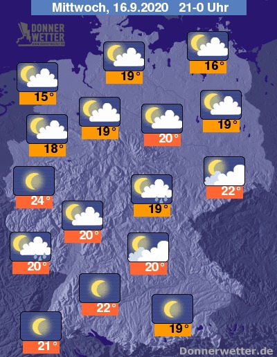 Am Abend bleibt es wechselnd bis stärker bewölkt. Im Süden und Südwesten können sich lokale Regengüsse und einzelne Gewitter entladen. Auch im Norden kann es aus dichteren Wolken stellenweise etwas tröpfeln. Sonst bleibt es trocken und teilweise kann man den Sonnenuntergang beobachten.