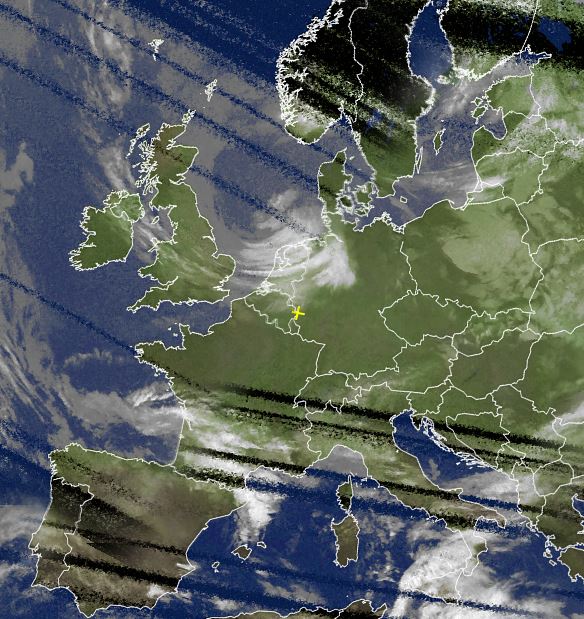 Hochdruckeinfluss bringt zur Zeit in weiten Teilen von Europa sehr freundliches und trockenes Wetter. Auf dem Satellitenfoto von heute Morgen sind zwar über den Benelux-Staaten und über dem Nordwesten von Deutschland teils dichtere Wolken zu erkennen, diese brachten jedoch keinen Regen und lösten sich im heutigen Tagesverlauf auch weitgehend auf. Ein Tief im nördlichen Mittelmeer sorgt jedoch besonders an der französischen Mittelmeerküste für teils kräftige Schauer und regional auch Gewitter.