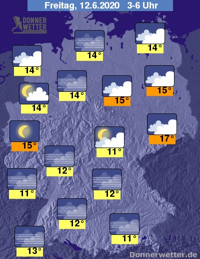Bis zu den Frühstunden kühlt die Luft auf 10 bis 17 Grad ab, am mildesten bleibt es im Osten.