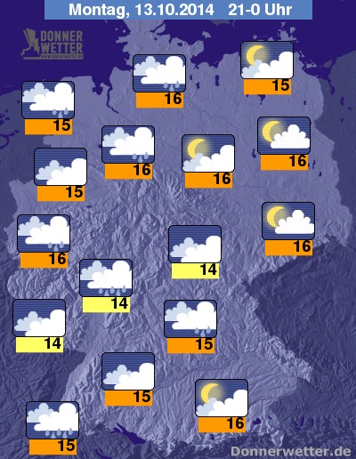 Heute Abend ziehen meist viele, verbreitet auch dichte Wolken durch und es fällt zeitweise Regen, weitgehend trocken bleibt es im Osten und Nordosten des Landes, hier ist der Himmel auch am ehesten noch aufgelockert bewölkt. Die Abendtemperatur liegt bei sehr einheitlichen 16 bis 14 Grad.