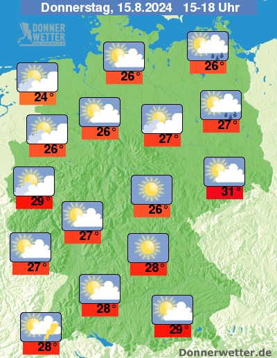 Am Donnerstagnachmittag zeigt sich der Himmel über weiten Landesteilen heiter oder es ist wechselnd bewölkt. Es bleibt meist niederschlagsfrei, einzelne Schauer und Gewitter sind in den Nachmittagsstunden vor allem im äußersten Osten und Nordosten sowie am Alpenrand möglich.