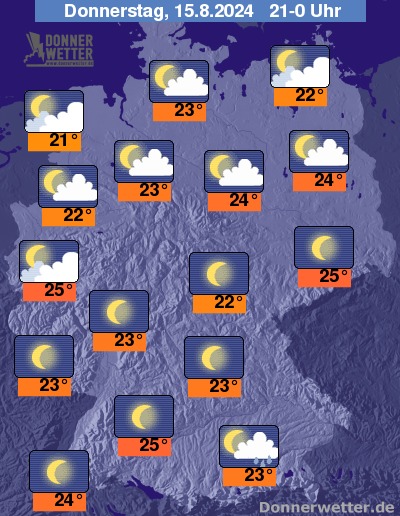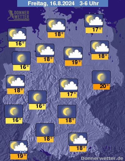 In der Nacht zum Freitag zeigt sich der Himmel über weiten Landesteilen sternenklar oder es ist nur gering bewölkt. Ein geringes Schauerrisiko besteht in der Nacht im äußersten Südwesten.