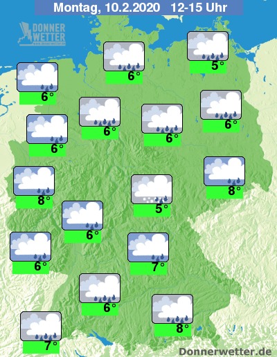 Die Temperaturen erreichen am Nachmittag Werte um 5 Grad im Thüringer Wald und um 9 Grad in Köln.