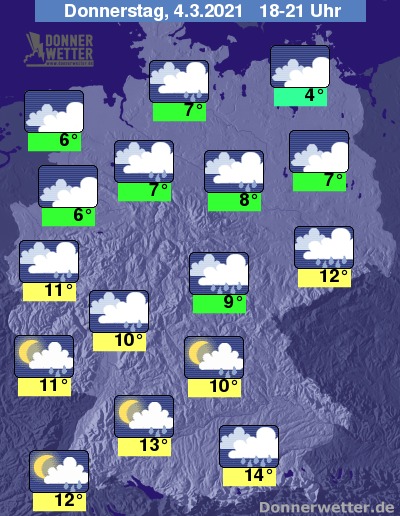 Heute Abend ziehen zumeist dichte Wolken durch, Auflockerungen sind am ehesten im Südwesten und Süden zeitweise möglich. Es fällt jedoch zeitweise Regen, nur im Nordwesten bleibt es weitgehend trocken. Die Temperatur liegt bei sehr kühlen 4 Grad in Rostock und bis 14 Grad in München.