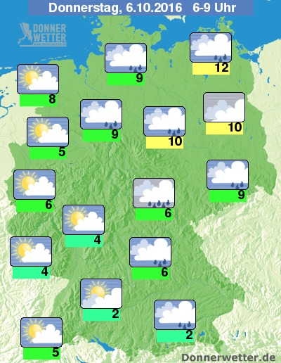 Der Donnerstagmorgen zeigt sich im ganzen Osten bedeckt. Im Westen sieht es bei einem leicht bewölkten und zeitweise sonnigen Himmel schon besser aus. Östlich der Linie Oberbayern-Bremen muss am Morgen immer wieder mit Schauern gerechnet werden.
