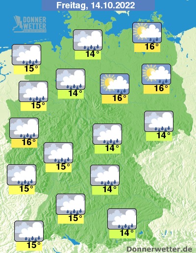 Am Freitag ziehen überwiegend dichte Wolken durch, gebietsweise kann es auch mal etwas auflockern. Es bilden sich zeitweise Schauer bei Höchstwerten von 14 Grad in Hannover und etwa 16 Grad in Bonn. An der See weht ein zum Teil stürmischer Wind.