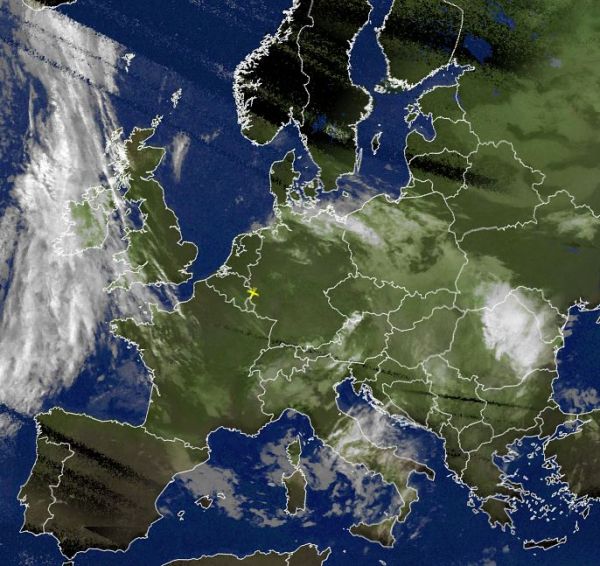 Auf dem Satellitenfoto von heute Morgen zeigt sich ein breites Wolkenband, das sich von Island über Irland und bis an die nordspanische Atlantikküste erstreckt. Hierbei handelt es sich um Tief "Leo" mit Kerndruck südlich von Irland. Besonders in Irland selbst regnet es vielerorts langanhaltend und teils auch ergiebig.
