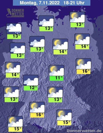 Heute Abend lockert der Himmel vor allem über der Südhälfte, teils auch im Westen, Osten und Nordosten auf, dazu bleibt es trocken. Im Norden und Nordwesten halte sich meist dichte Wolken und es fällt hier und da auch etwas Regen. Die Temperatur liegt bei 11 Grad in Jena und 16 Grad in Stuttgart. An den Küsten weht weiterhin ein oft stürmischer Wind.