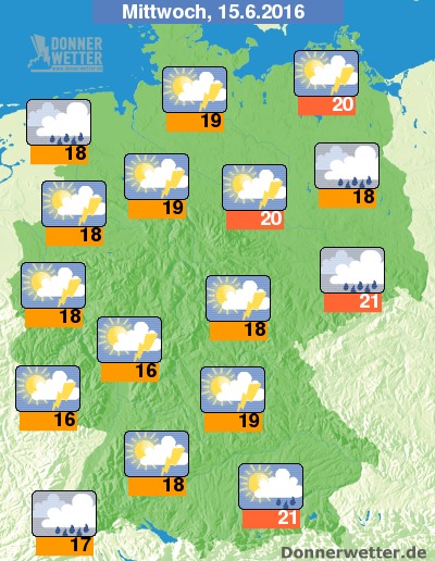 Heute ziehen neben möglichen heiteren Abschnitten häufig dichte Wolken durch und es können sich verbreitet Schauer, stellenweise auch Gewitter entwickeln. Örtlich muss auch mit kräftigem und ergiebigem Regen gerechnet werden. Die Temperatur steigt auf 16 Grad am Taunus und bis 21 Grad in Leipzig.