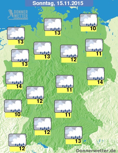 Zwar liegen heute die Temperaturen mit Werten um 10 bis 14 Grad C wieder verbreitet im zweistelligen Plusbereich, dafür stellt sich aber teils ergiebiger Regen ein. Die Sonnenscheindauer beläuft sich heute wohl in den meisten Regionen auf "0 Stunden", dafür gibt es aber wieder die Extraportion Wind: Vor allem in den Mittelgebirgen drohen heute stürmische Böen oder Sturmböen, auf exponierten Lagen sind auch schwere Sturmböen (10 Beaufort) möglich.