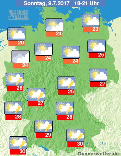 Heute Nachmittag bleibt es im Norden weitgehend locker bewölkt und dazu trocken. Weiter nach Süden hin ist es wechselnd, zunehmend aufgelockert bewölkt, zum Teil ziehen auch dichte Wolken auf, dazu bleibt es noch weitgehend trocken, einzelne Schauer und Gewitter sind dennoch möglich. Die Temperatur liegt bei 19 Grad an der Nordsee und bis 31 Grad in München.