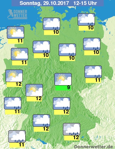 Heute Nachmittag halten sich über dem Norden, dem Osten und dem Süden mehrheitlich dichte Wolken, die hier zum Teil kräftige Regenschauer bringen. Im übrigen Bundesgebiet ist es teils aufgelockert, teils stark bewölkt, dazu sind ebenfalls hier und da kräftige Schauer möglich. Die Temperatur liegt nur bei 9 bis 12 Grad. Der Wind weht anfangs noch oft frisch bis stark, lässt jedoch langsam nach. An den Küsten bleibt es zunächst verbreitet stürmisch.