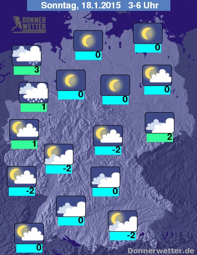 In der kommenden Nacht fällt anfangs im Osten und Süden noch zeitweise Schnee, Schneeregen oder Regen, dabei kann es stellenweise glatt auf den Straßen sein. Nach Mitternacht klingen die Niederschläge hier jedoch nach und nach ab und teils lockert die Bewölkung auch etwas auf. In den anderen Landesteilen ist es dagegen häufig sternenklar oder nur locker bewölkt und es bleibt trocken. In der zweiten Nachthälfte ziehen jedoch im Nordwesten des Landes dichte Wolken mit zeitweiligem Schnee, Schneeregen oder Schnee auf, dabei kann es ebenfalls teils sehr glatt werden. Die Temperatur sinkt auf 3 Grad an der Nordsee und bis -2 Grad am Alpenrand.