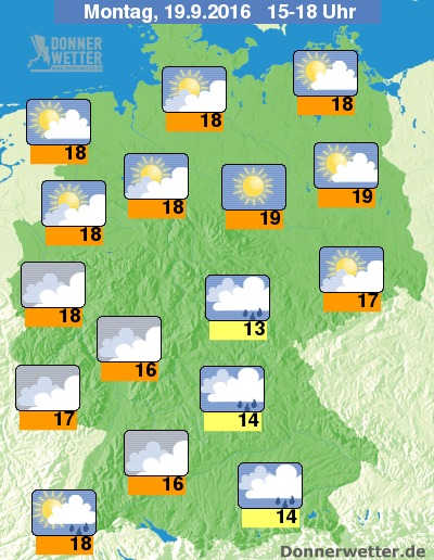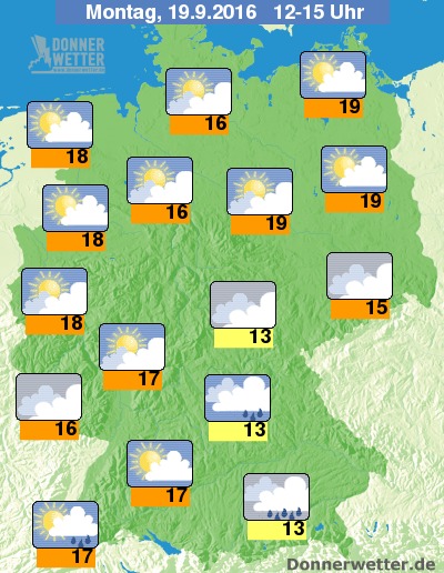 Während sich am frühen Montagnachmittag Sonne und Wolken in der Nordhälfte des Landes abwechseln, zeigt sich der Himmel im Südosten meist bedeckt. Vor allem zwischen Südthüringen und Oberbayern muss zudem immer wieder mit zeitweiligen Schauern gerechnet werden.