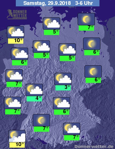 Während der zweiten Nachthälfe kommen Mond und Sterne immer häufiger zum Vorschein. Bis zu den Frühstunden kühlt die Luft auf 3 bis 7 Grad ab und es droht stellenweise wieder Bodenfrost. Etwas milder bleibt es an den Küsten und im Markgräflerland.