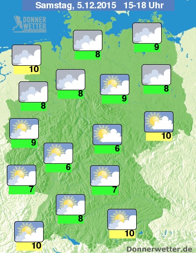 Heute Nachmittag bleiben die Wolken im Norden weitgehend dicht, im großen Rest des Landes gibt es einen Wechsel aus aufgelockerten und teils auch dichten Wolken. Längere Aufheiterungen sind vor allem im Süden, aber auch im Osten möglich, dazu bleibt es bundesweit trocken. Die Temperatur steigt auf 6 Grad am Westerwald und bis auf etwa 10 Grad im Breisgau. Im Umfeld von Nord- und Ostsee herrscht oft Sturm, vor allem an der Nordsee sind dabei auch orkanartige Böen möglich, sonst weht im Norden des Landes ein teils starker und in Böen teils stürmischer Wind.