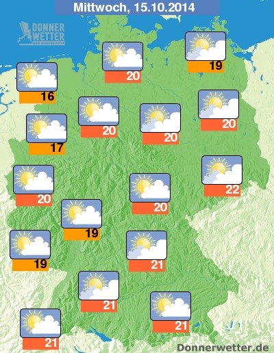 Am Mittwoch ist es häufig wechselnd bewölkt, gebietsweise ziehen jedoch auch mal dichtere Wolken durch, dazu bleibt es meist trocken. Die Temperatur steigt auf 16 bis 22 Grad.