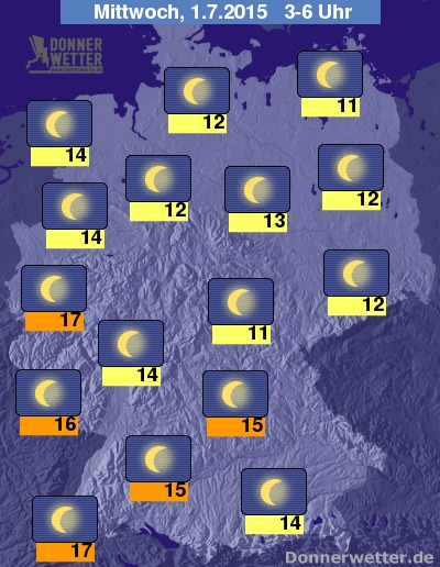 In der Nacht zum Mittwoch funkeln überall in Deutschland die Sterne und es bleibt natürlich trocken. Die Temperaturen bleiben oft sehr mild und liegen am Morgen bei 17 Grad in Köln und etwa 11 Grad an der Müritz.