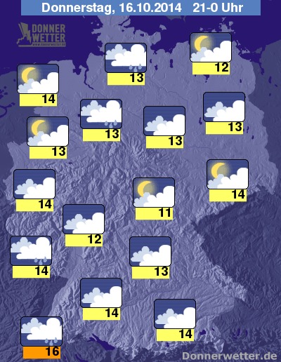 Heute Abend klingen die Niederschläge meist rasch ab, besonders nördlich der Elbe fällt aber noch zeitweise Regen, im Südwesten kommt im Laufe des Abends neuer Regen auf, in den anderen Landesteilen bleibt es bei meist dichten Wolken, gebietsweise kann der Himmel jedoch auch auflockern. Stellenweise bildet sich Nebel oder Dunst. Die Abendtemperatur liegt bei etwa 15 Grad im Breisgau und rund 11 Grad an der Mecklenburger Seenplatte.