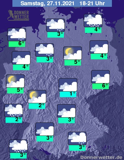 Heute Abend bleibt es weiterhin verbreitet bedeckt und oft auch neblig-trüb, vor allem im Westen kann der Himmel aber auch vielerorts auflockern. Im Norden, Südwesten und Südosten des Landes fällt gebietsweise Regen oder Schnee, sonst bleibt es weitgehend trocken. Die Temperatur liegt bei 1 Grad in Erfurt und etwa 6 Grad in Cuxhaven.