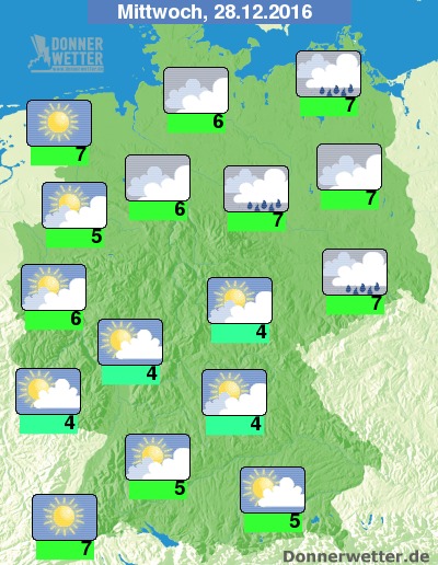 Heute bleibt es im Norden und Osten der Republik meist bedeckt, dabei fällt hier auch gebietsweise Regen, weiter nach Süden und Westen hin heitert es aber zunehmend auf und es bleibt trocken. Oft sonnig wird es im Nordwesten und Südwesten Deutschlands. Die Temperatur steigt auf eher milde 4 bis 7 Grad.